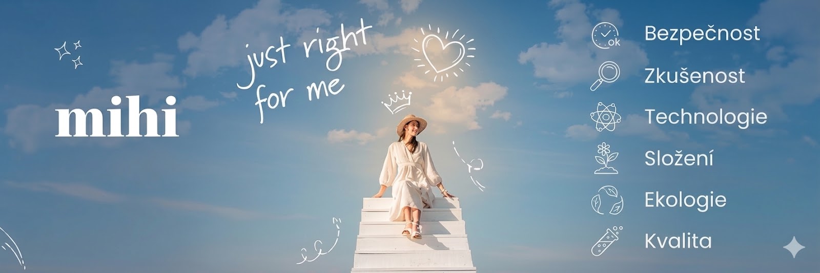 Slovo mihi v latině znamená pro mě. mihi je značka, která se zrodila z lásky k budoucím zákazníkům a partnerům. Značka, jejíž každý prvek je vyjádřením péče o jejich blaho a splnění očekávání - od jedinečných receptur, přes design obalů, až po principy fungování společnosti. Sdílíme to nejlepší. Chceme vám představit filozofii "to pravé pro mě".